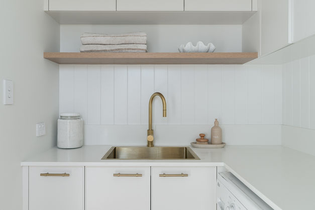 Set in St Helens, Tasmania, the home was thoughtfully designed from the ground up to feel refined yet relaxed. Curved details throughout the home bring a gentle rhythm to the interiors, while brushed brass and natural stone echo the tones of the coastal landscape. Hidden doorways add a touch of quiet luxury and intrigue, seamlessly integrated to enhance both flow and function.